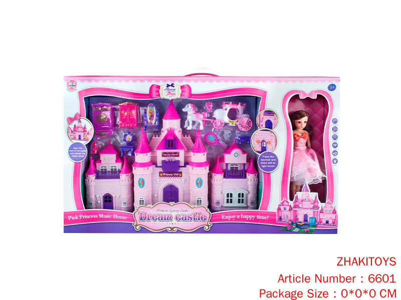 Замок Музыкальные огни + Мебель Карета Принцесса Домашнее хозяйство Девушки Макияж Красота Макияж Аксессуары.