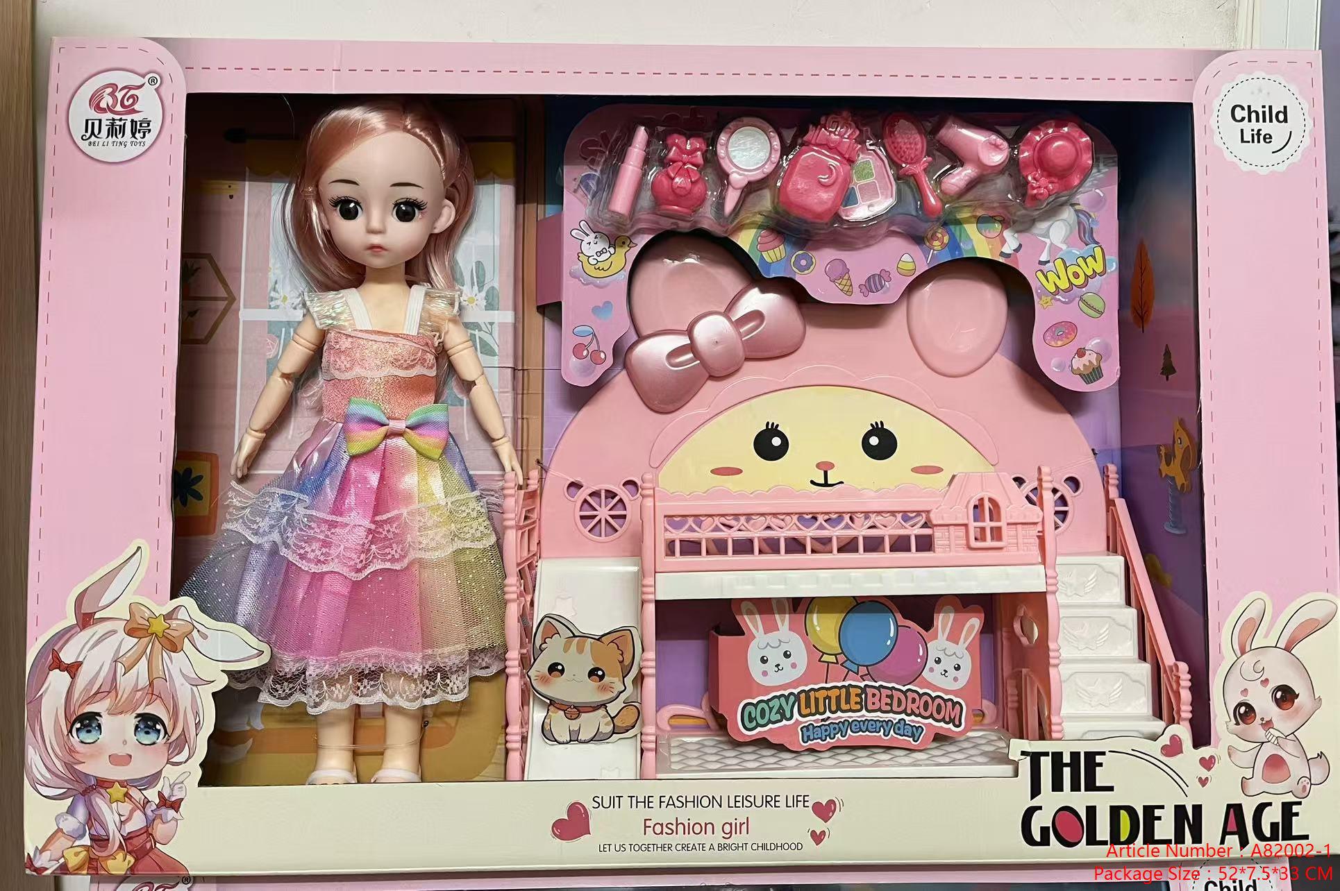 Название продукта: Кукла 12 дюймов с двухъярусной кроватью и большим медведем, косметический набор из 7 предметов, ассорти из 2 цветов