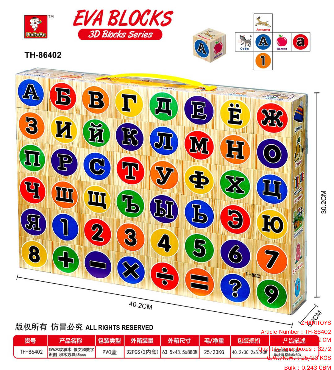 Product Name: Wood grain EVA Bricks Russian and digital figure Bricks box 48pcs
