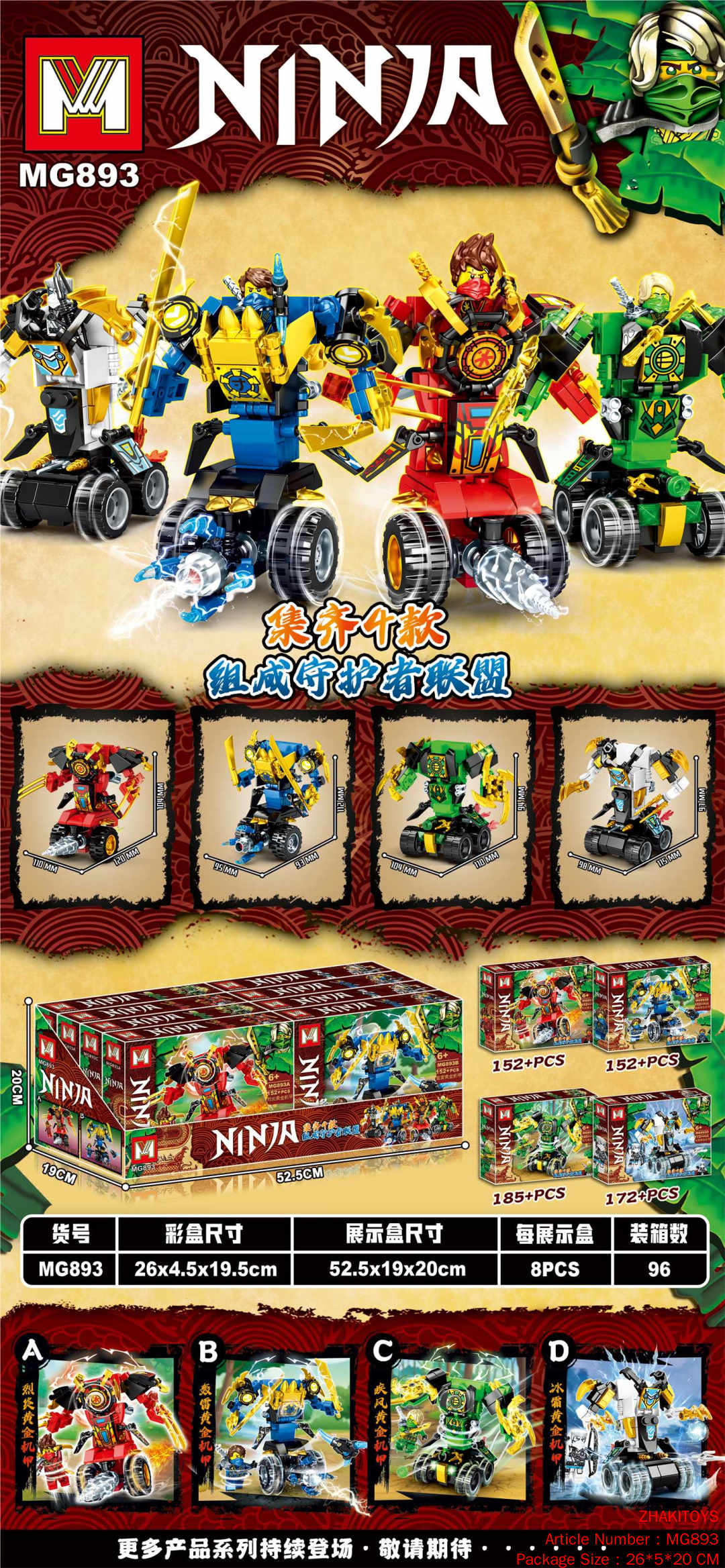 Название продукта: M Brand 4 в 1 Фантом Ниндзя Головоломка Строительные Блоки, 8шт/Выставочная Коробка.